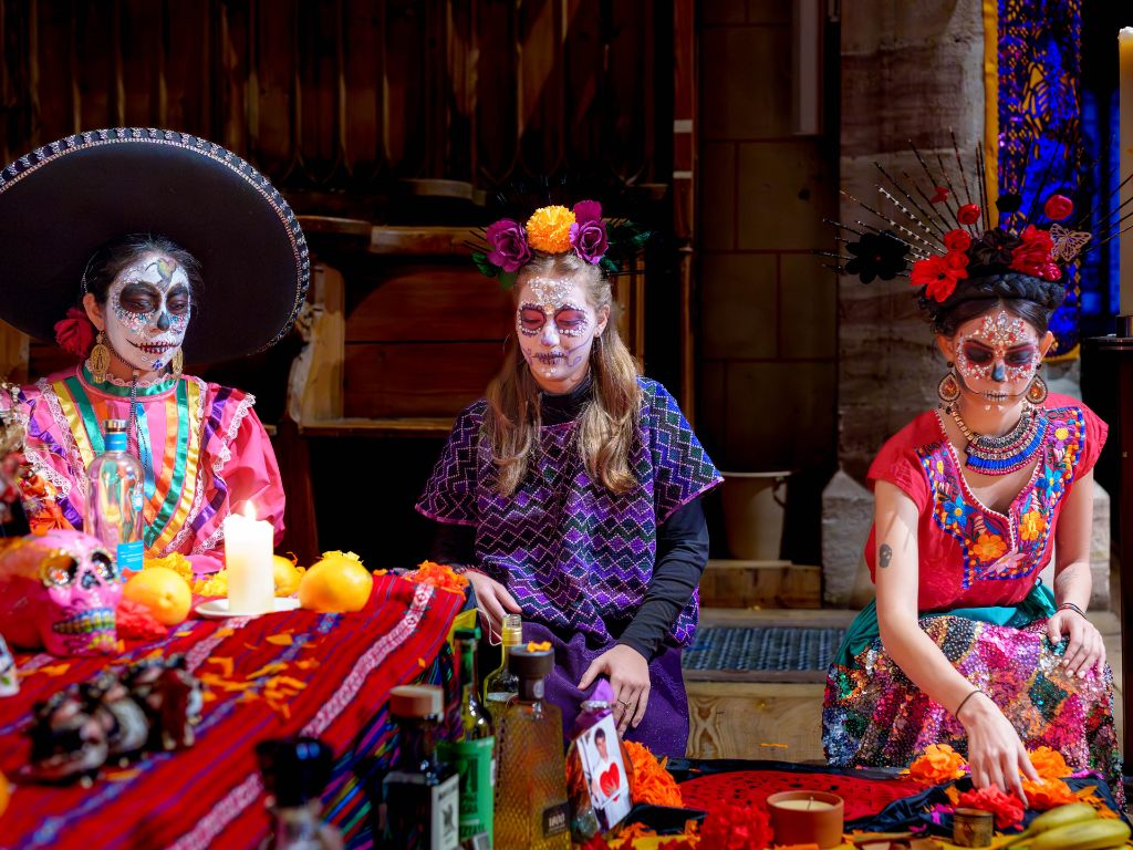Bestaunen Sie den blumengeschmückten Altar de Muertos und eine Prozession von geschminkten Catrinas. Geniessen Sie dazu mexikanische Spezialitäten. Lernen Sie an Kurzführungen durch die Ausstellungen «Der Weg ins Jenseits» und «Memory» unterschiedliche Umgangsweisen mit Tod und Abschied kennen. Kinder können sich auf Bastel-Workshops, Kinderschminken und ein Kino freuen.