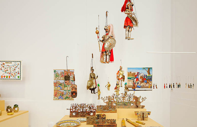 Sizilien zeigt sich ganz besonders in kultureller Hinsicht sehr eigenständig. Das MKB verfügt über eine bemerkenswerte Sammlung sizilianischer Volkskultur. Besonders herauszuheben sind die Gross- und Kleinkeramiken (inkl. Krippen), die "Opera dei pupi" (Marionetten) und die bunt bemalten Eselskarren, denen man längst nicht mehr real auf den Strassen begegnet - dafür als Modellausgaben in allen Grössen und Formen und als Sujet auf unterschiedlichsten Produkten.