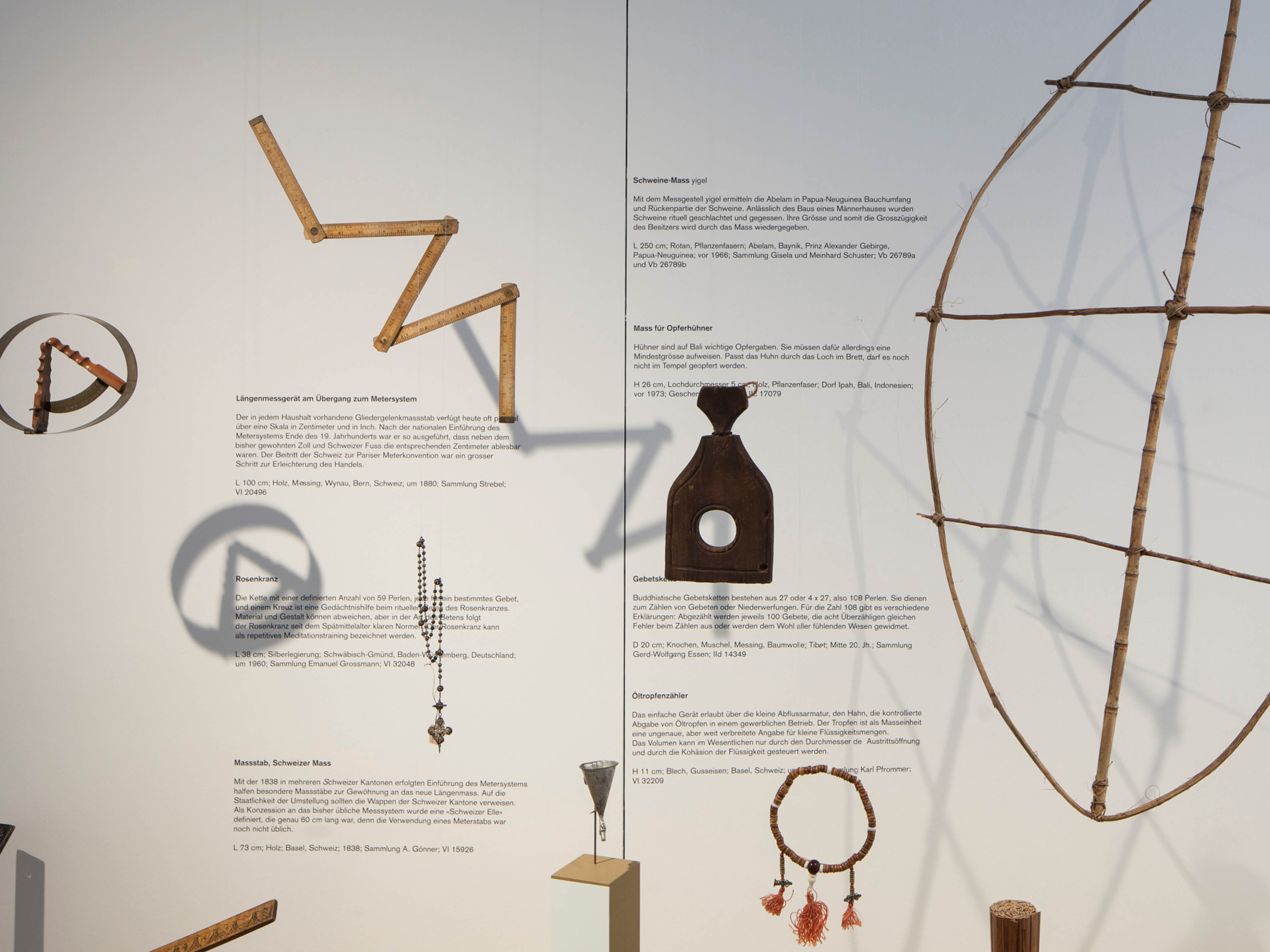 Im Prinzip ist Grösse durch Normen definiert. Doch gross ist nicht überall gleich gross und von Kultur zu Kultur verschieden. Der Massstab «Basler Elle» findet sich deshalb neben dem Loch im Brett, durch das auf Bali Hühner gezogen wurden. Blieben sie stecken, hatten sie die richtige Grösse für ein Tempelopfer.