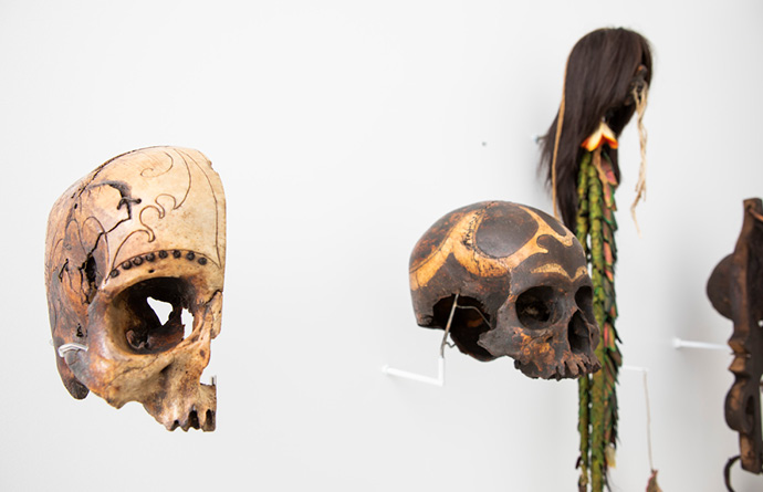 Ein Teil der Ausstellung «Stimmen aus einer archivierten Stille», die bis zum Lockdown am 13. März im Foyer des Theater Basel gezeigt wurde, ist neu in «Wissensdrang trifft Sammelwut» zu sehen. Darin stellt sich die Künstlerin Deneth Piumakshi Wedaarachchige provokativ als 3D Print den Zuschreibungen der Sarasins. Ryser + Schonfeldt thematisieren mit «Wir wünschten wir hätten euch sagen hören...» koloniale Verflechtungen von Sammlern und Sammlungen.