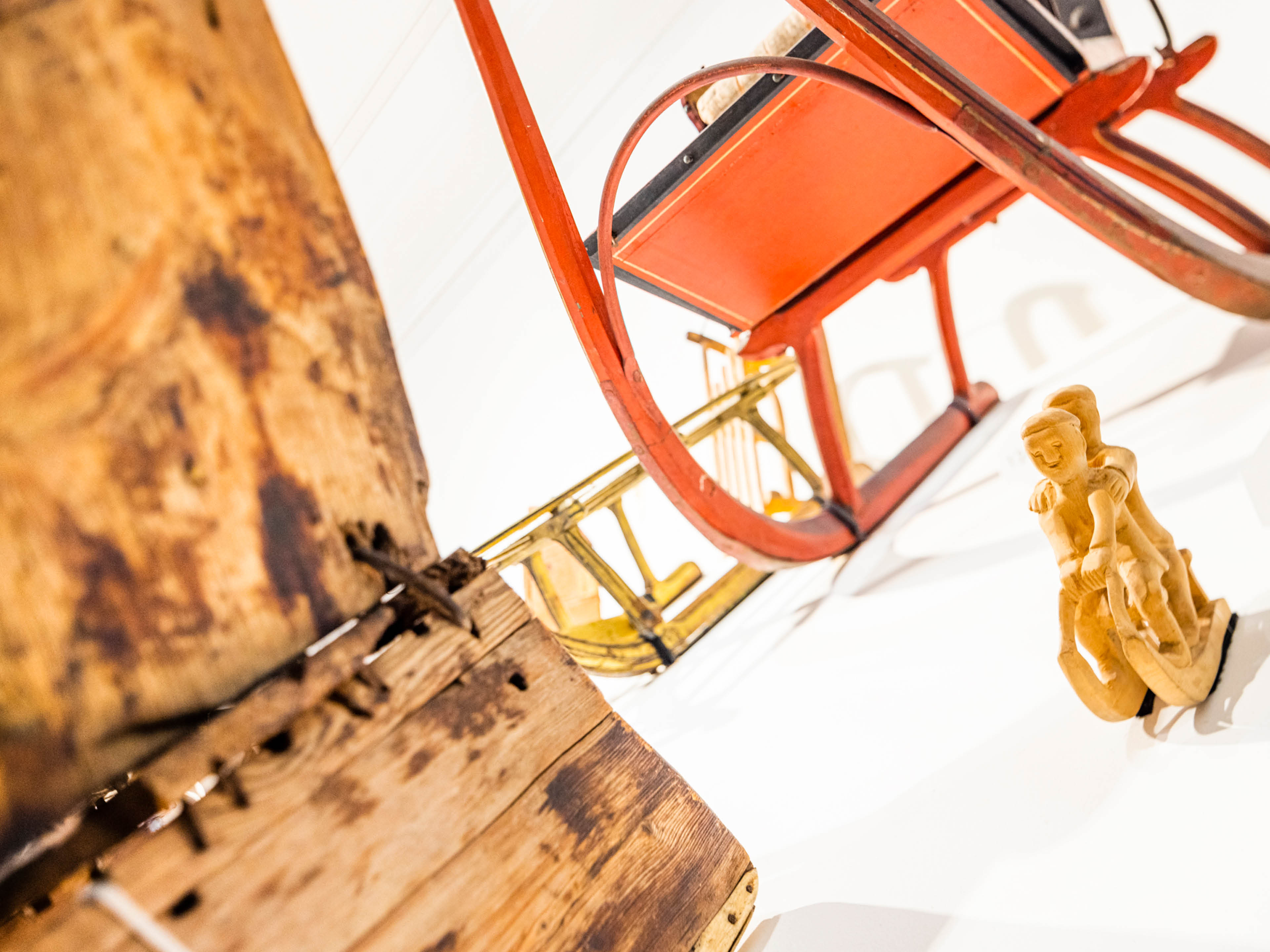 <p>&laquo;Generell eines der Highlights der Ausstellung ist sicher der Steilhang in der Ausstellung, den wir kreiert haben. Darauf sind ganz viele Schlitten zu sehen. Und da haben alle Besuche&shy;rinnen und Besucher die M&ouml;glichkeit, ihren pers&ouml;nlichen Favoriten zu finden. Es hat von sehr reich verzierten Schlitten bis zu sehr einfachen Modellen darunter. Und eines der Ein&shy;fachsten ist mein Favorit. Es heisst &laquo;Rittbr&auml;tt&raquo;. Es kommt aus Vals, aus Graub&uuml;nden, und ist einfach ein schlichtes Brett, das man bei der Arbeit zum Berg mit hochtragen konnte und nach getaner Arbeit stehend oder sitzend wieder runter schlitteln konnte.&raquo;</p>