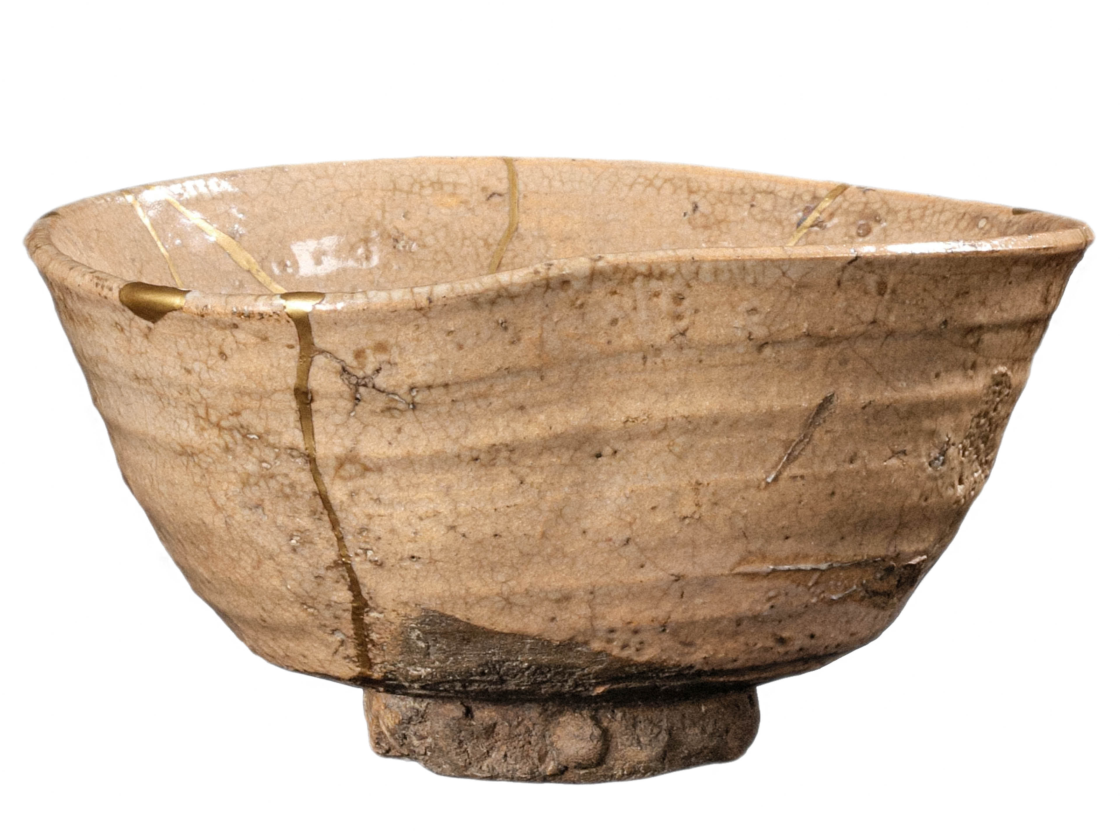 <p>Nahaufnahme von drei braunen und beigefarbenen Teeschalen aus Japan. In weiteren Nahaufnahmen werden Vasen gezeigt, die nebeneinander aufgereiht sind, runde Schalen sowie eine grosse Schale aus Ton, die zahlreiche Bruchstellen aufweist.</p>