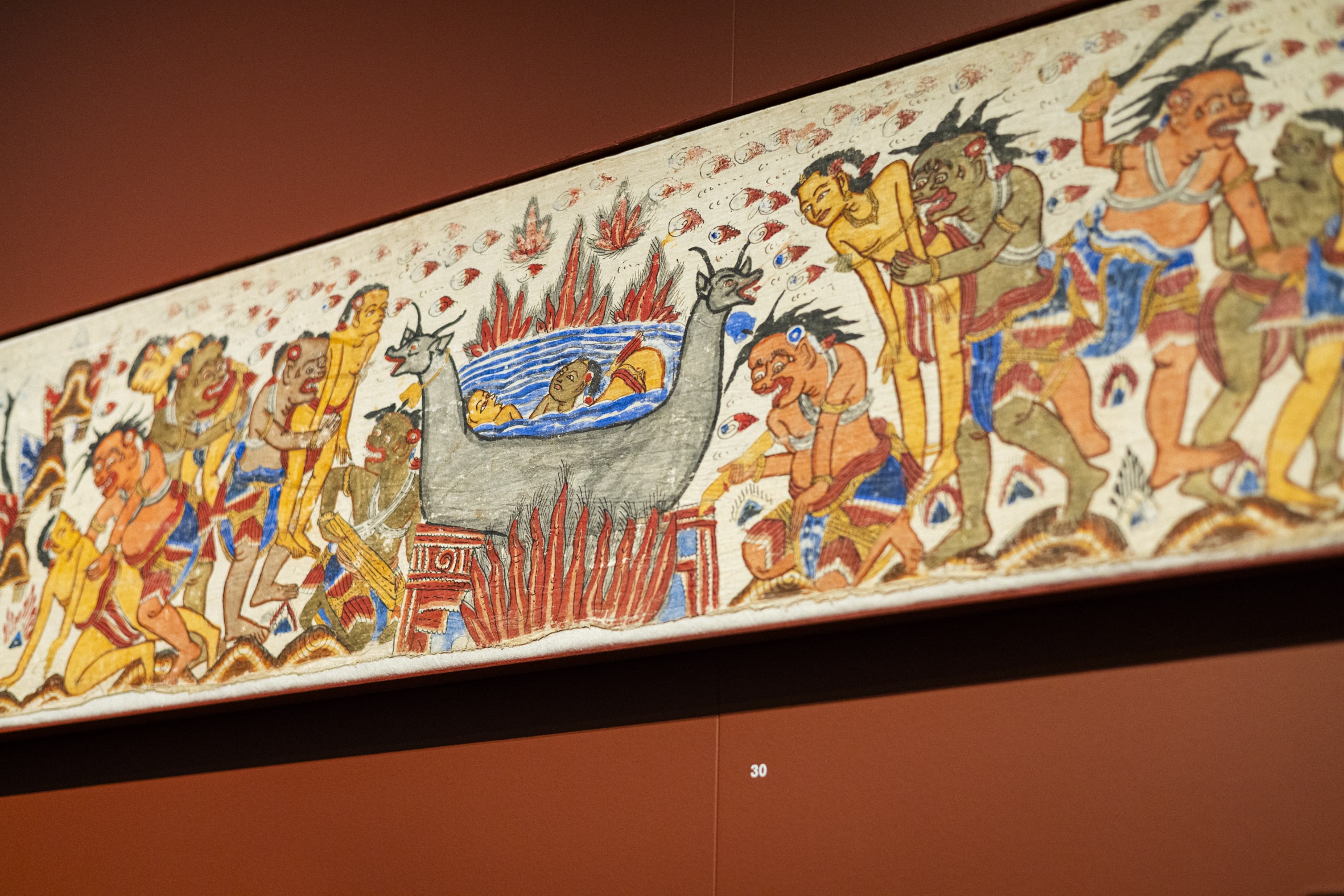 Das Totenbuch Bardo Thödol aus Tibet beschreibt die ersten 49 Tage nach dem Tod – und die Begegnungen mit guten und bösen Gottheiten. Auf Bali spielen Kremationstürme, Verbrennungssärge und Effigien eine wichtige Rolle bei der Seelenreinigung. Die sich über Monate ziehen kann und im Zentrum der Ausstellung steht.
