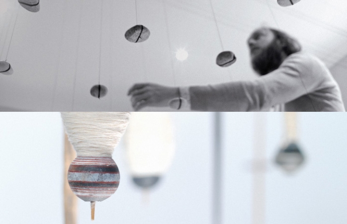 Mit diesen Materialien und tausenden am Rheinufer gesammelten Steinen hat er komplexe, in ihrer Mechanik faszinierende Installationen kreiert – schwebende Steine, reine Poesie und Schönheit. Die filigranen Installationen treten mit Objekten aus der Sammlung und der markanten Dacharchitektur in einen spielerischen, sinnlichen Dialog über das menschliche Werden, Sein und Vergehen.