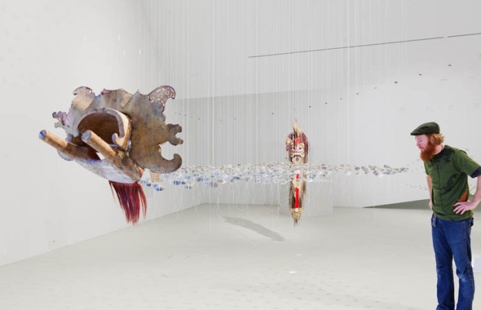 Kinetische Installationen von Justin Fiske im Dialog mit Objekten aus der Sammlung des Museums der Kulturen