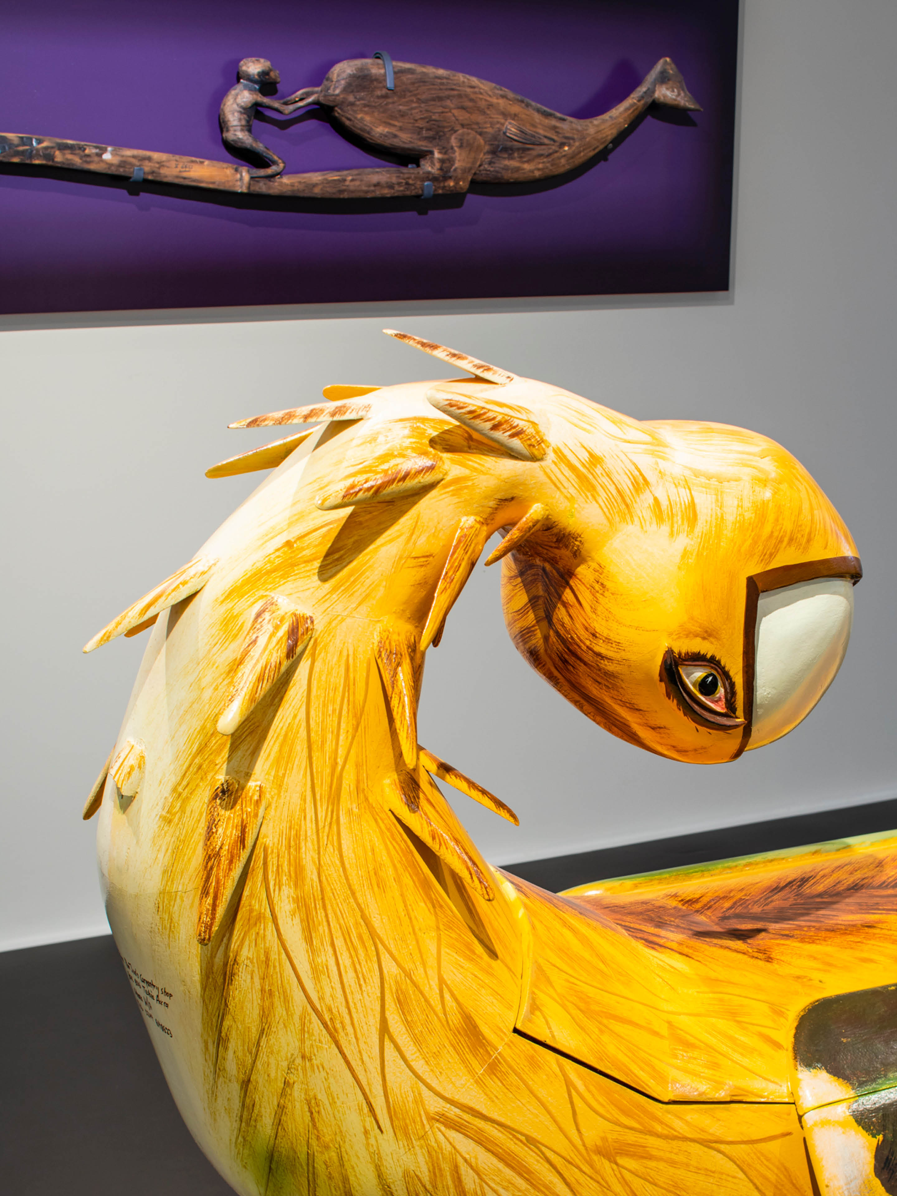 Dans la dernière salle, l’image – et la relation – s’inverse : les animaux et les divinités sous forme animale sont ici supérieurs aux êtres humains. Les animaux construisent une relation spéciale avec eux – comme dans le cas des guerriers jaguars au Mexique ou des « chuchoteurs » de requins aux îles Salomon. Ils les protègent, les ravissent – notamment sous la forme d’amulettes – et se font vénérer par eux, comme la vache sacrée indienne. La relation entre l’être humain et l’animal peut donc fonctionner autrement.