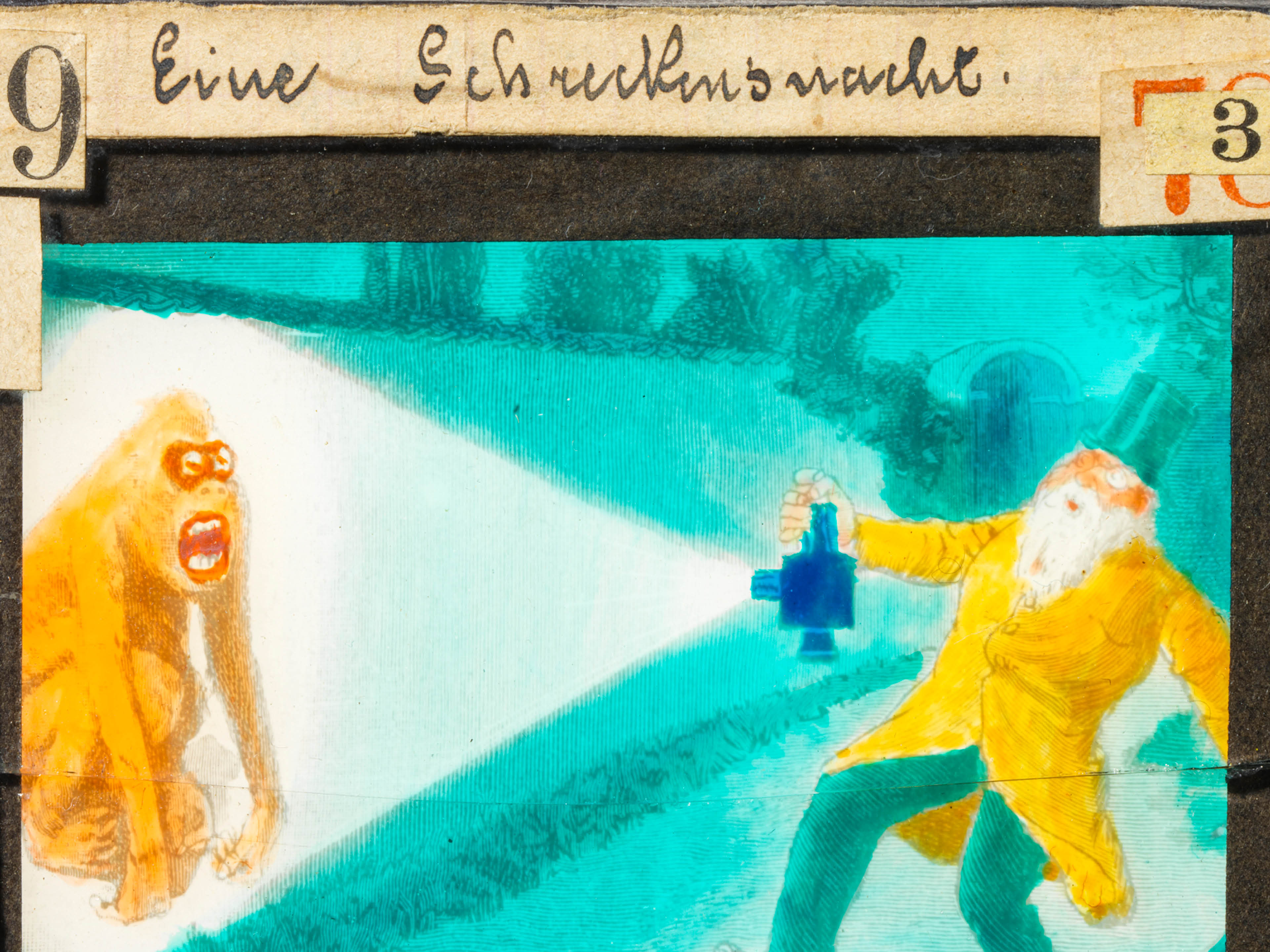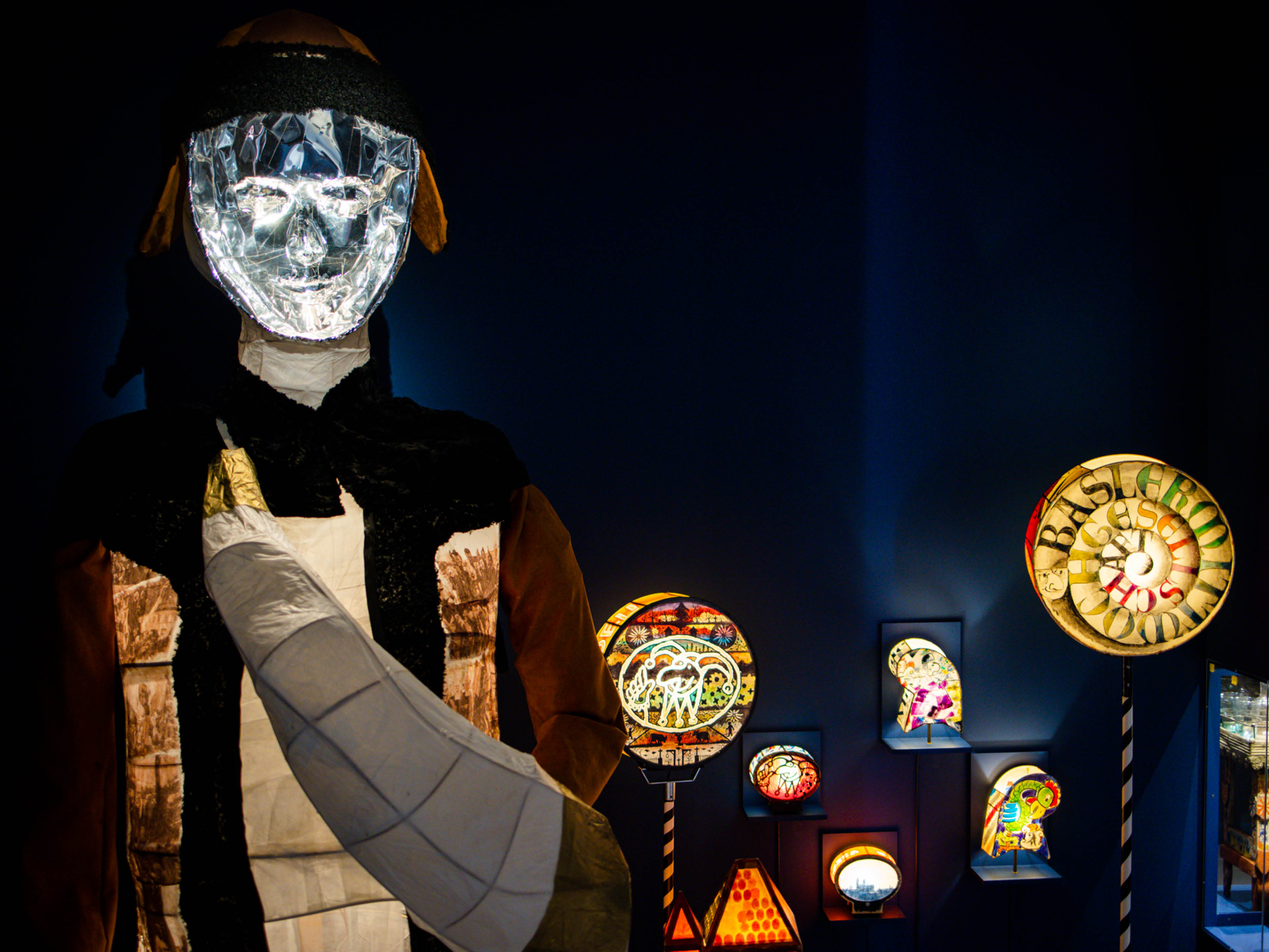 La lumière fait de même. L’exposition est illuminée par des lanternes de carnaval, de tête et à manche, et par de nombreuses lampes, qui, depuis des siècles, accompagnent les êtres humains dans l’obscurité. Elles créent une belle ambiance. De plus, des peintures, gravures sur bois et photos montrent le cadre impressionnant que représente la nuit, mais aussi l’aurore.