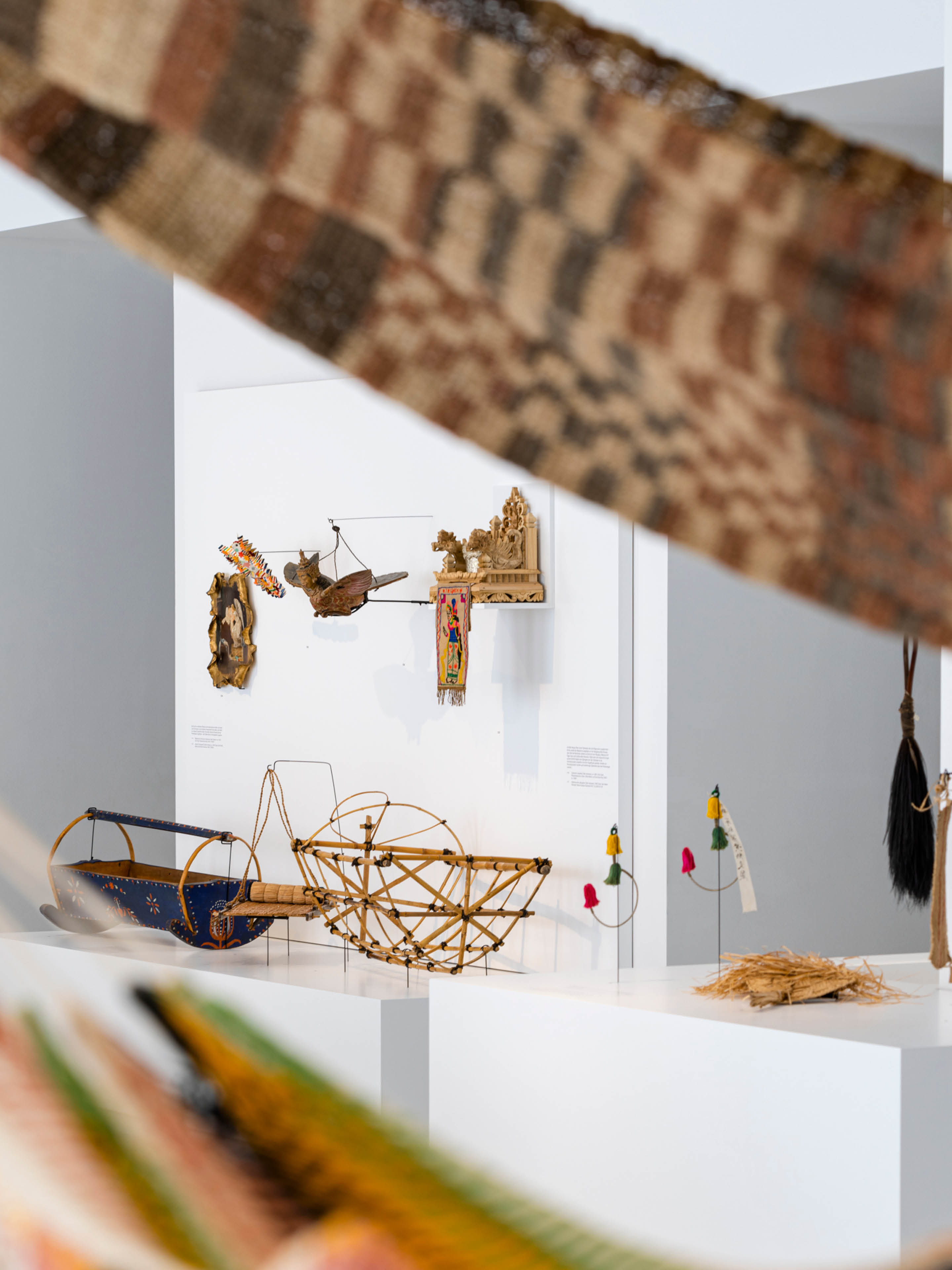 Que faisons-nous la nuit ? Dormir, certes – mais pas seulement. L’exposition montre comment, la nuit, le monde se couche, plus ou moins confortablement, et se tient chaud. D’ingénieux systèmes éloignent les moustiques et des objets spéciaux – comme des petites tables d’offrandes – protègent les enfants.